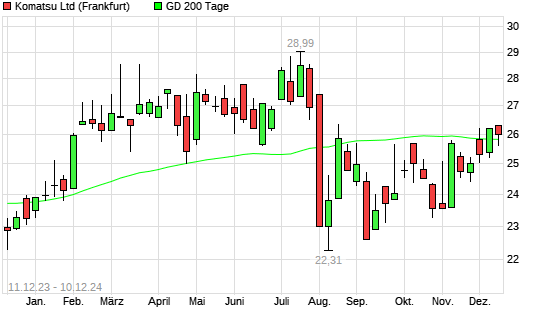 Mit dem Rücksetzer auf 25,61 EUR hat die Komatsu-Aktie am 09.12.2024 die 200-Tage-Linie nach unten gekreuzt.