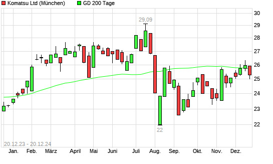 Mit dem Rücksetzer auf 25,11 EUR hat die Komatsu-Aktie am 19.12.2024 die 200-Tage-Linie nach unten gekreuzt.