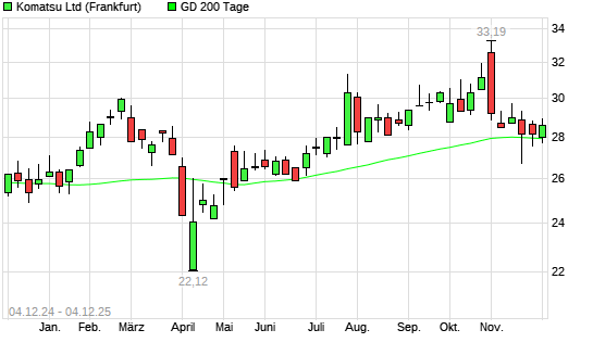 Mit dem Rücksetzer auf 27,74 EUR hat die Komatsu-Aktie am 03.12.2025 die 200-Tage-Linie nach unten gekreuzt.
