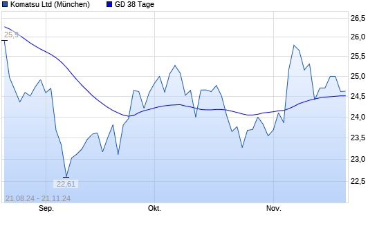 Mit dem Rücksetzer auf 24,54 EUR hat die Komatsu-Aktie am 20.11.2024 die 38-Tage-Linie nach unten gekreuzt.