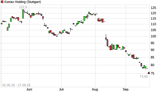 Mit dem Rücksetzer auf 74,50 EUR hat die Komax Holding-Aktie (ISIN CH0010702154) am 26.09.2025 ein neues 10-Jahres-Tief erreicht und damit den Kurs vom 25.09.2025 eingestellt.