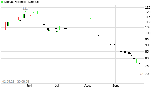 Mit dem Rücksetzer auf 73,00 EUR hat die Komax Holding-Aktie (ISIN CH0010702154) am 29.09.2025 ein neues 10-Jahres-Tief erreicht und damit den Kurs vom 26.09.2025 eingestellt.