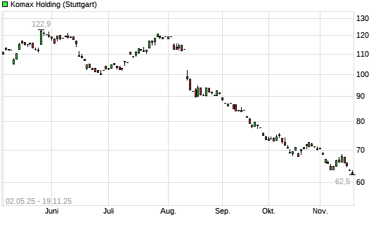 Mit dem Rücksetzer auf 62,00 EUR hat die Komax Holding-Aktie (ISIN CH0010702154) am 18.11.2025 ein neues 10-Jahres-Tief erreicht und damit den Kurs vom 10.11.2025 eingestellt.