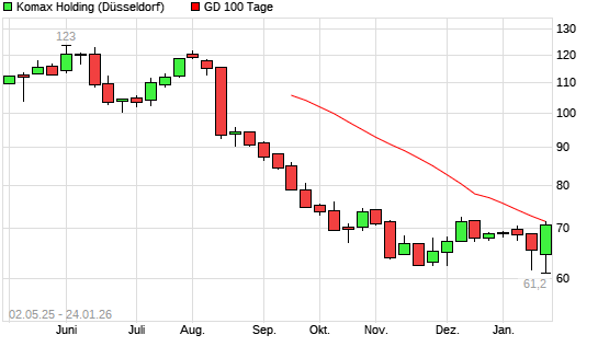Mit dem Anstieg auf 69,50 EUR hat die Komax Holding-Aktie am 23.01.2026 die 100-Tage-Linie nach oben gekreuzt.Der Abstand zur 200-Tage-Linie beträgt aktuell -20,88%. ##trendBox## Die ...weiterlesen