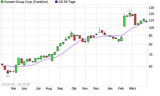 Mit dem Anstieg auf 109,00 EUR hat die Konami-Aktie am 02.04.2025 die 50-Tage-Linie nach oben gekreuzt.