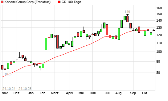 Mit dem Rücksetzer auf 125,00 EUR hat die Konami-Aktie am 23.10.2025 die 100-Tage-Linie nach unten gekreuzt.