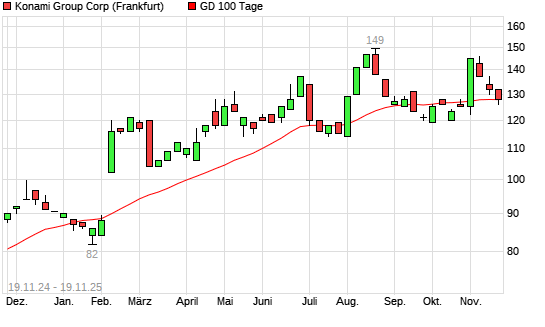 Mit dem Rücksetzer auf 126,00 EUR hat die Konami-Aktie am 18.11.2025 die 100-Tage-Linie nach unten gekreuzt.