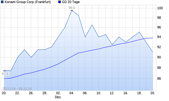 Mit dem Rücksetzer auf 93,00 EUR hat die Konami-Aktie am 19.12.2024 die 20-Tage-Linie nach unten gekreuzt.