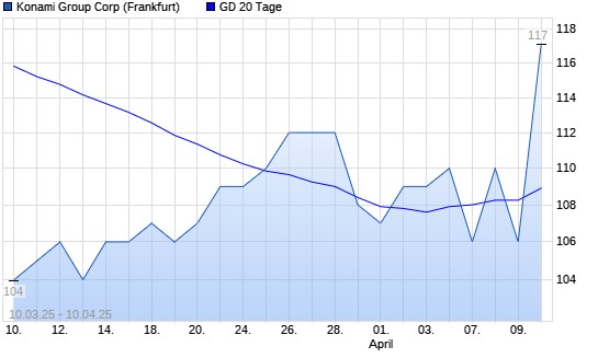 Mit dem Rücksetzer auf 106,00 EUR hat die Konami-Aktie am 09.04.2025 die 20-Tage-Linie nach unten gekreuzt.