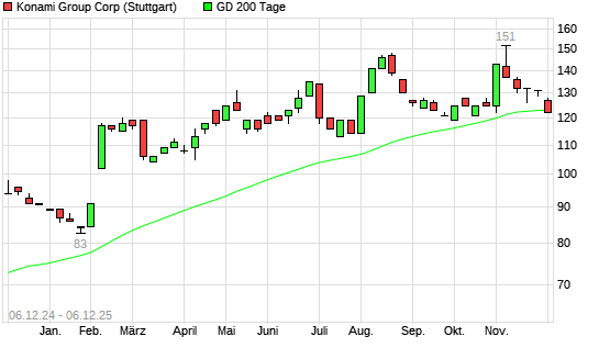 Mit dem Rücksetzer auf 123,00 EUR hat die Konami-Aktie am 05.12.2025 die 200-Tage-Linie nach unten gekreuzt.