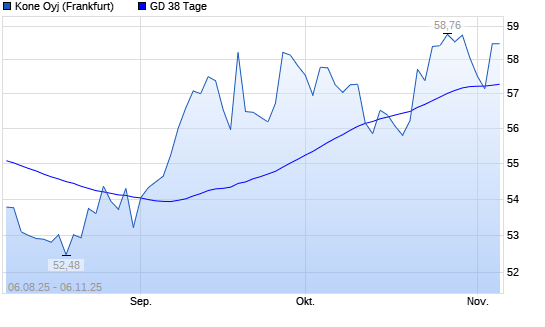 Mit dem Anstieg auf 58,48 EUR hat die Kone-Aktie am 05.11.2025 die 38-Tage-Linie nach oben gekreuzt.