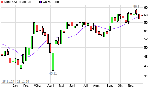 Mit dem Anstieg auf 57,60 EUR hat die Kone-Aktie am 24.11.2025 die 50-Tage-Linie nach oben gekreuzt.