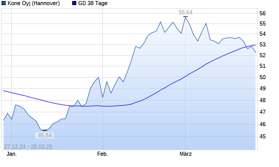 Mit dem Rücksetzer auf 52,52 EUR hat die Kone-Aktie am 25.03.2025 die 38-Tage-Linie nach unten gekreuzt.