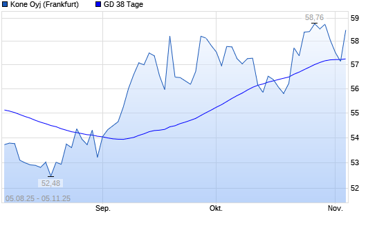 Mit dem Rücksetzer auf 57,14 EUR hat die Kone-Aktie am 04.11.2025 die 38-Tage-Linie nach unten gekreuzt.