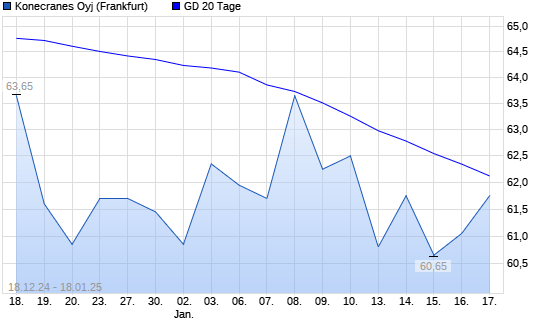 Mit dem Anstieg auf 61,75 EUR hat die Konecranes-Aktie am 17.01.2025 die 20-Tage-Linie nach oben gekreuzt.