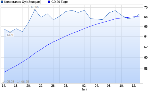 Mit dem Rücksetzer auf 67,85 EUR hat die Konecranes-Aktie am 13.06.2025 die 20-Tage-Linie nach unten gekreuzt.Die Konecranes-Aktie befindet sich seit dem 13.05.2025 im langfristigen Aufwärtstrend ...weiterlesen