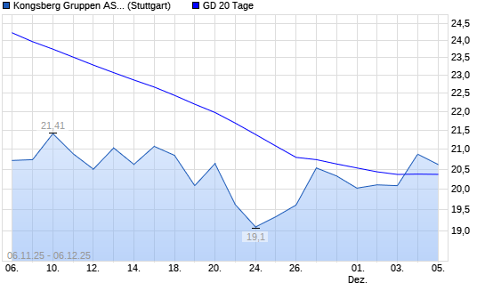 Mit dem Anstieg auf 20,45 EUR hat die Kongsberg-Aktie am 05.12.2025 die 20-Tage-Linie nach oben gekreuzt.