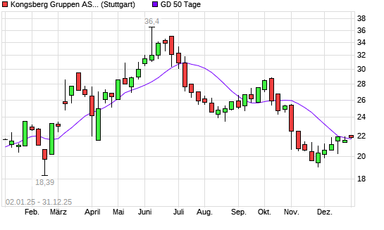 Mit dem Anstieg auf 21,82 EUR hat die Kongsberg-Aktie am 30.12.2025 die 50-Tage-Linie nach oben gekreuzt.