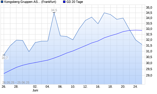 Mit dem Rücksetzer auf 32,00 EUR hat die Kongsberg-Aktie am 24.06.2025 die 20-Tage-Linie nach unten gekreuzt.