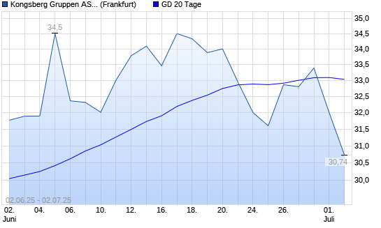 Mit dem Rücksetzer auf 32,00 EUR hat die Kongsberg-Aktie am 01.07.2025 die 20-Tage-Linie nach unten gekreuzt.