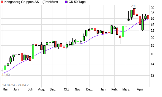 Mit dem Rücksetzer auf 127,35 EUR hat die Kongsberg-Aktie am 23.04.2025 die 50-Tage-Linie nach unten gekreuzt.