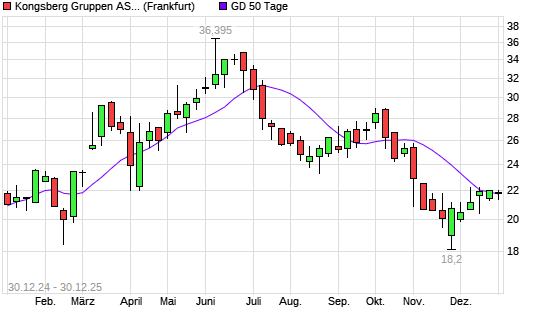 Mit dem Rücksetzer auf 21,54 EUR hat die Kongsberg-Aktie am 29.12.2025 die 50-Tage-Linie nach unten gekreuzt.