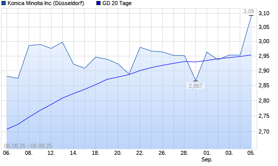 Mit dem Anstieg auf 3,10 EUR hat die Konica Minolta-Aktie am 05.09.2025 die 20-Tage-Linie nach oben gekreuzt.