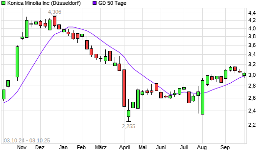 Mit dem Anstieg auf 3,02 EUR hat die Konica Minolta-Aktie am 02.10.2025 die 50-Tage-Linie nach oben gekreuzt.