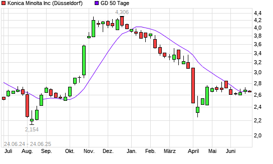 Mit dem Rücksetzer auf 2,66 EUR hat die Konica Minolta-Aktie am 23.06.2025 die 50-Tage-Linie nach unten gekreuzt.