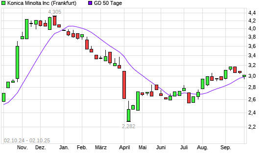 Mit dem Rücksetzer auf 2,95 EUR hat die Konica Minolta-Aktie am 01.10.2025 die 50-Tage-Linie nach unten gekreuzt.