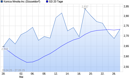 Mit dem Rücksetzer auf 2,69 EUR hat die Konica Minolta-Aktie am 26.05.2025 die 20-Tage-Linie nach unten gekreuzt.Die Konica Minolta-Aktie befindet sich seit dem 27.03.2025 im langfristigen ...weiterlesen