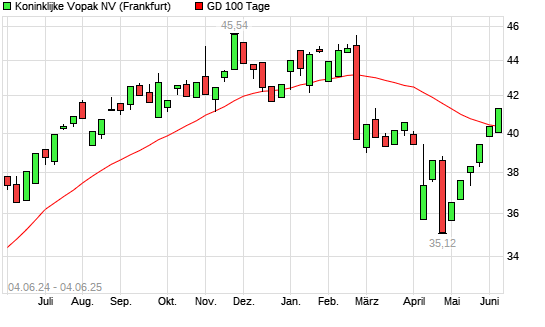 Mit dem Anstieg auf 41,24 EUR hat die Koninklijke Vopak-Aktie am 03.06.2025 die 100-Tage-Linie nach oben gekreuzt.