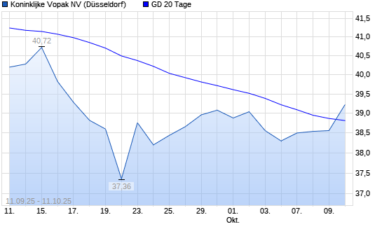 Mit dem Anstieg auf 39,14 EUR hat die Koninklijke Vopak-Aktie am 10.10.2025 die 20-Tage-Linie nach oben gekreuzt.