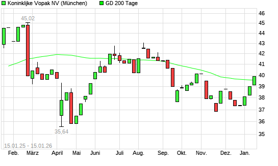 Mit dem Anstieg auf 39,50 EUR hat die Koninklijke Vopak-Aktie am 14.01.2026 die 200-Tage-Linie nach oben gekreuzt.