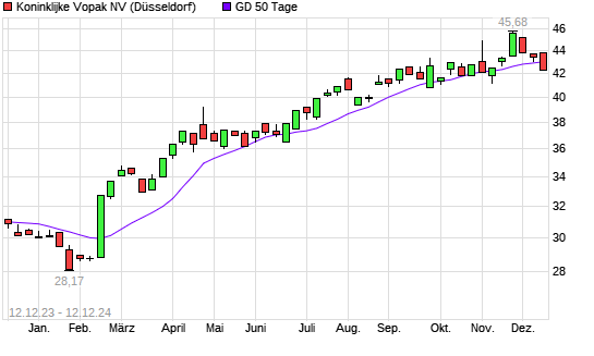 Mit dem Rücksetzer auf 42,88 EUR hat die Koninklijke Vopak-Aktie am 11.12.2024 die 50-Tage-Linie nach unten gekreuzt.