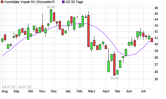 Mit dem Rücksetzer auf 40,66 EUR hat die Koninklijke Vopak-Aktie am 23.07.2025 die 50-Tage-Linie nach unten gekreuzt.