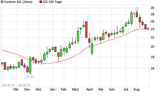 Mit dem Anstieg auf 24,38 EUR hat die Kontron-Aktie am 25.08.2025 die 100-Tage-Linie nach oben gekreuzt.
