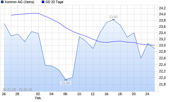 Mit dem Anstieg auf 23,36 EUR hat die Kontron-Aktie am 24.02.2026 die 20-Tage-Linie nach oben gekreuzt.