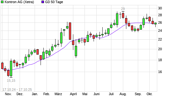 Mit dem Anstieg auf 26,04 EUR hat die Kontron-Aktie am 16.10.2025 die 50-Tage-Linie nach oben gekreuzt.