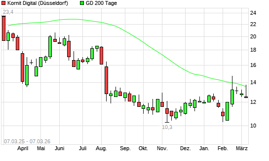 Mit dem Rücksetzer auf 13,30 EUR hat die Kornit Digital-Aktie am 06.03.2026 die 200-Tage-Linie nach unten gekreuzt.Die Kornit Digital-Aktie befand sich seit dem 05.03.2026 ...weiterlesen