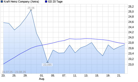 Mit dem Anstieg auf 23,79 EUR hat die Kraft Heinz-Aktie am 22.08.2025 die 20-Tage-Linie nach oben gekreuzt.