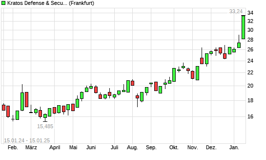 Mit dem Anstieg auf 31,67 EUR hat die Kratos Defense & Security Solutions-Aktie (ISIN US50077B2079) am 14.01.2025 ein neues 10-Jahres-Hoch erreicht und damit den Kurs vom 13.01.2025 eingestellt.