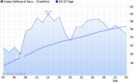 Mit dem Rücksetzer auf 55,90 EUR hat die Kratos Defense & Security Solutions-Aktie am 02.09.2025 die 20-Tage-Linie nach unten gekreuzt.