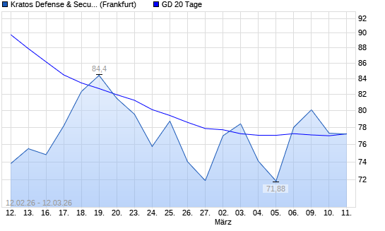 Mit dem Rücksetzer auf 77,20 EUR hat die Kratos Defense & Security Solutions-Aktie am 11.03.2026 die 20-Tage-Linie nach unten gekreuzt.