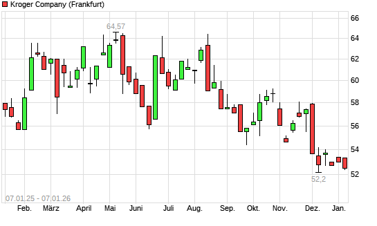 Mit dem Rücksetzer auf 52,41 EUR hat die Kroger Company-Aktie (ISIN US5010441013) am 06.01.2026 ein neues 12-Monats-Tief erreicht und damit den Kurs vom 17.12.2025 eingestellt.