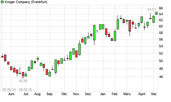 Mit dem Anstieg auf 64,26 EUR hat die Kroger Company-Aktie (ISIN US5010441013) am 07.05.2025 ein neues All-Time-High erreicht und damit den Kurs vom 06.05.2025 eingestellt.