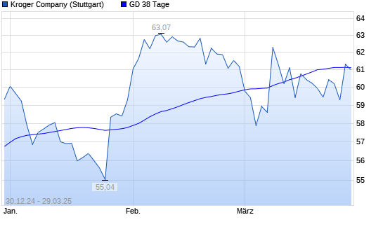 Mit dem Rücksetzer auf 61,01 EUR hat die Kroger Company-Aktie am 28.03.2025 die 38-Tage-Linie nach unten gekreuzt.