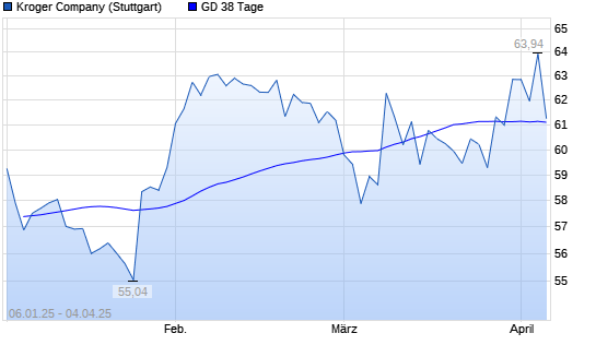 Mit dem Rücksetzer auf 60,94 EUR hat die Kroger Company-Aktie am 03.04.2025 die 38-Tage-Linie nach unten gekreuzt.