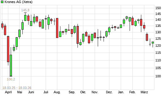 Mit dem Rücksetzer auf 119,80 EUR hat die Krones-Aktie (ISIN DE0006335003) am 17.03.2026 ein neues 6-Monats-Tief erreicht und damit den Kurs vom 16.03.2026 eingestellt.