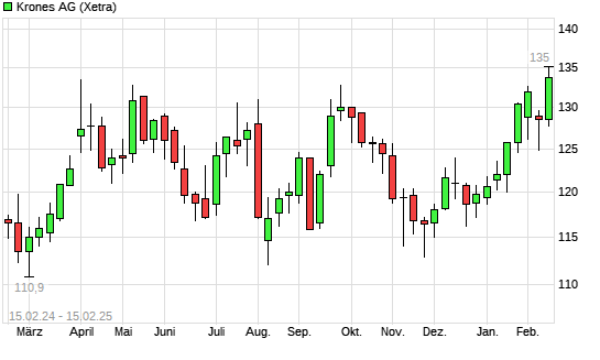 Mit dem Anstieg auf 134,00 EUR hat die Krones-Aktie (ISIN DE0006335003) am 14.02.2025 ein neues All-Time-High erreicht und damit den Kurs vom 31.01.2025 eingestellt.